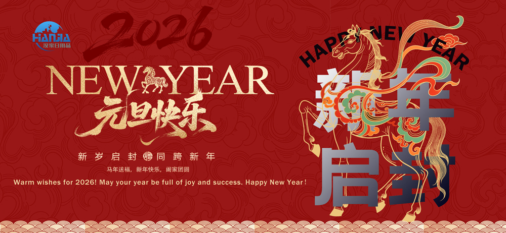 1. januára 2026 sa označuje tradičný čínsky sviatok Nového roka. Každý rok v tomto čase využívame príležitosť zamyslieť sa nad našimi úspechmi a nedostatkami v nádeji, že do nového roka prinesieme šťastie a dosiahneme lepšie výsledky ako v minulosti. Rok 2025 sa skončil a spoločnosť Jinhua Hanjia Commodity Co., Ltd. sa pozerá späť na svoju cestu, výrobu a minulý rok. import-export, zažili náročný rok, ktorý bol ovplyvnený globálnou ekonomickou situáciou.