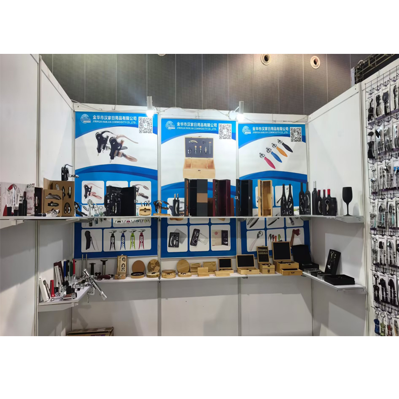 Spoločnosť Jinhua Hanjia Commodity Co., Ltd., ktorá sa nachádza v rovnakom administratívnom regióne ako miesto konania výstavy a do jednej hodiny jazdy autom od mesta Yiwu Small Commodities City, využíva výhody inherentného regionálneho hospodárskeho výrobného reťazca. Naša spoločnosť využila prosperujúce medzinárodné obchodné prostredie elektronického obchodu Yiwu a vybrala sedem produktových radov a stovky položiek vhodných pre domácich a medzinárodných operátorov elektronických obchodov, ako sú domáce a medzinárodné platformy elektronického obchodu. ako vývrtky na víno z nehrdzavejúcej ocele a zliatiny vína, zátky na víno, nástroje na šampanské, lisy na cesnak, keksy na orechy, otvárače na konzervy, škrabky, zmäkčovače mäsa, šejkry na koktaily, banky z nehrdzavejúcej ocele, karafy na víno, drevené a PU súpravy na víno, krabice na víno a ďalšie.