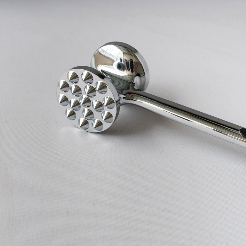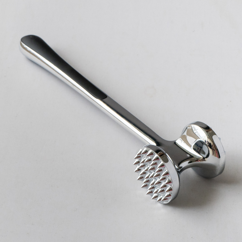 Jedná sa o zmäkčovač mäsa zo zliatiny zinku vyrábaný spoločnosťou Jinhua Hanjia Commodity Co., Ltd, vyrobený pomocou integrovaného procesu tlakového liatia. Kovový povrch je ručne starostlivo vyleštený a celý výrobok prechádza ekologickým bezpečným galvanickým procesom. Povlak je potom pasivovaný, aby bol tvrdý ako oceľ. S dĺžkou 22 cm je perfektne dimenzovaný na uchopenie mäsa v prednej a zadnej časti pre pohodlné uchopenie mäsa. tenderizér je navrhnutý podľa zlatého rezu, ktorý umožňuje užívateľom udrieť do mäsa s minimálnou námahou, spoliehajúc sa výlučne na gravitáciu hlavy kladiva. Hlava zmäkčovača mäsa má dva rôzne povrchy pre rôzne druhy mäsa. Plastové nárazníky na oboch stranách rukoväte poskytujú pohodlie pri dlhšom používaní. Celková hmotnosť tenderizéra je 275 gramov a jeho dizajn zaisťuje veľmi jednoduchú funkčnosť pri znížení nákladov v porovnaní s tradičnými modelmi o 13%. vodou alebo použite umývačku riadu.
