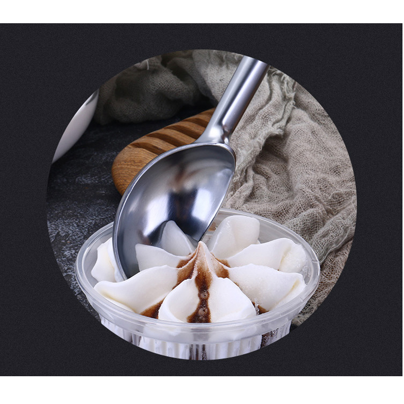 Táto naberačka na zmrzlinu zo zliatiny zinku s pohodlnou rukoväťou vyrobená z prémiovej zliatiny zinku bezšvovým odlievaním pod tlakom, naberačka má hladko tvarované hrany bez ostrých rohov, čo zaisťuje pohodlné a zaoblené uchopenie. Napriek svojej dĺžke 16,5 cm váži naberačka len 75 gramov, vďaka našej 6-krokovej plne ručnej povrchovej úprave je ručne vyrábaný procesom výroby pri vysokej teplote. (120 °C), vytvára odolnú, ale ľahkú štruktúru. Hlava naberačky má otvorený tvar člna s jedinečne navrhnutým 108-stupňovým smerom von zahnutým hrotom, ktorý bez námahy prekrojí mrazenú zmrzlinu. Na oboch stranách hlavy naberačky siahajú zakrivené línie nižšie ako hlavné telo, čím sa vytvorí zvlnený, zvlnený povrch, ktorý umožňuje bezproblémové uvoľňovanie zmrzliny, bez ohľadu na to. úrovni.